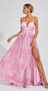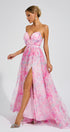 Sheila Pembe Çiçekli Yırtmaçlı Omuz Uzun Elbise