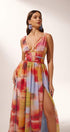 Sheila Baskılı Yüksek Yırtmaçlı Uzun Elbise