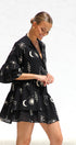Elbise, dinamik ve hoş bir siluet yaratan asimetrik katmanlı ve katmanlı bir etekle tasarlandı. Astarsız, yarı şeffaf pamuktan üretilen bu ürün, hafif ve nefes alabilen bir his sağlar. En doğru renk ve baskı gösterimi için lütfen kumaş örneğinin son görseline bakınız. Baskı yerleşiminin giysiye göre değişebileceğini ve her parçanın benzersiz bir şekilde size ait olmasını sağlayabileceğinizi unutmayın.