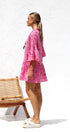 Astarsız, yarı şeffaf pamuktan üretilen bu elbise, üst üste giymek veya tek başına giymek için idealdir. Her giysi benzersiz bir görünüm sağlayan benzersiz bir baskı yerleşimi sergiliyor. En doğru renk gösterimi için lütfen kumaş örneğinin son görseline bakınız.