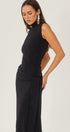 Şık balıkçı yaka ve düşük bel askılı, yere kadar uzanan çarpıcı kolsuz elbisemizle dikkatleri üzerinize çekin. Çok esnek metalik trikodan üretilen bu elbise, vücudunuza uyum sağlayan mükemmel bir kesim sunar ve her hareketinizde en iyi şekilde görünmenizi sağlar. Kazak tasarımı, şık ve kusursuz görünümü korurken giyip çıkarmayı kolaylaştırır.