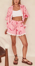 Kısa Kollu Baskılı Tatil Günlük İki Parçalı Set