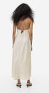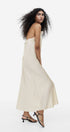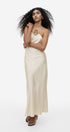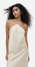 Boyundan bağlamalı tasarıma ve kişiye özel uyum için bağcıklı sırt kısmına sahip bu bilek boyu saten elbiseyle görünümünüzü yükseltin. Çıkarılabilir çiçek broş zarif bir dokunuş katarken tamamen astarlı kumaş konfor ve rahat bir uyum sağlar.
