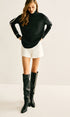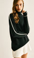 Yan Kontrast Çizgili Balıkçı Yaka Kazak