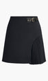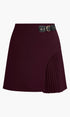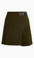 Yan Pile Detaylı Tokalı Kemerli Etek