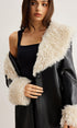 Siyah Deri Görünümlü Kürk Detaylı Ceket