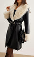 Şık deri görünümlü tasarımı ve yaka ile manşetlerdeki yumuşak kürk detaylarıyla dikkat çeken bu kaban, zarafeti ve sıcaklığı bir araya getiriyor. Belde tokalı tasarımıyla stilinizi öne çıkarın!
