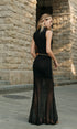 Kolsuz Transparan Panelli Kemersiz Elbise