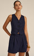 Kolsuz V Yaka Blazer Yelek ve Şort Takımı