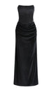 Peluş kadifeden üretilen bu elbise, lüks bir his ve sofistike bir görünüm sunuyor. Yere kadar uzanan tasarımı dramatiklik katarken, zamana meydan okuyan stili her etkinlikte kendini ifade etmeni sağlar.