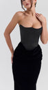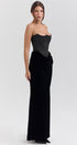 Bu kadife gece elbisesi, gösterişli büstiyer stili ve askısız yakasıyla zarafet ve ihtişam yayıyor. Sırtı açık tasarım ve vücudu saran siluet, kıvrımlarınızı vurgulayarak resmi etkinlikler için mükemmel hale getirir.