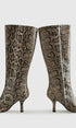 Yılan Derisi Desenli Diz Boyu Çizme