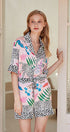 Snow Leopard Kısa Pijama Takımı ile şık bir şekilde gevşeyin. Gündelik rahatlık için tasarlanan bu set, bol kesimli bir siluete ve şık bir kar leoparı baskısına sahiptir. Yaka ve kısa kollular sofistike bir dokunuş katarken, uyluk uzunluğundaki şortlar uzanmak veya uyumak için nefes alma kolaylığı sağlar. Sıcak geceler veya rahat sabahlar için mükemmeldir.