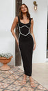 Bu zarif maksi elbise, kıvrımlarınızı güzelce saran, bodycon tarzına sahiptir. Kalın omuz askıları hem destek hem de modaya uygun bir görünüm sağlarken, hafif alçak sırt kısmı cazibeli bir dokunuş katıyor.