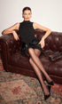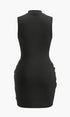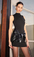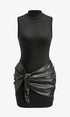 Dik Yaka Suni Deri Büzgü Panelli Elbise