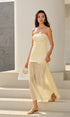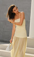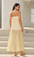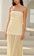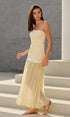 Straplez Kıvrımlı Uzun Elbise