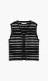Çizgili V Yaka Önden Bağlamalı Kazak Yelek