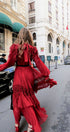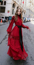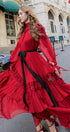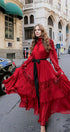 Sylvia Dantelli Katlı Şifon Maxi Elbise