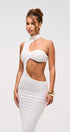 Tüm Gözler Üzerinizde: Beyaz Dokulu Cut-Out Maxi Elbise
