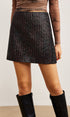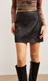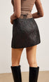 Dokulu Suni Deri Fermuarlı Etek