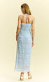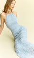 Dokulu Fırfırlı Şifon Askılı Uzun Elbise