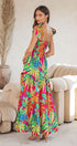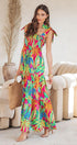 Thirza Baskılı Papyon Büzgülü Uzun Elbise
