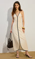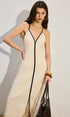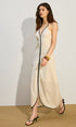 Bağcıklı Kemer Keten Ve Pamuklu Uzun Elbise