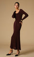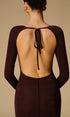 Bağlamalı Yaka Sırt Dekolteli Jarse Uzun Elbise