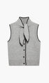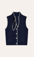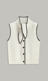 Bağcıklı Yaka Kontrast Biyeli Düğmeli Triko Yelek