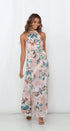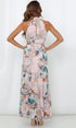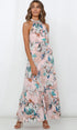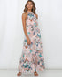 Tina Baskılı Boyundan Bağlamalı Katlı Maxi Elbise