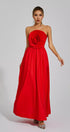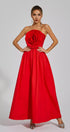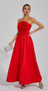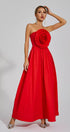 Tori Kırmızı Gül Çiçek Düşük Omuz Maxi Elbise