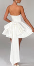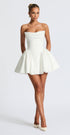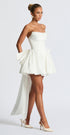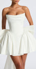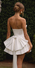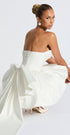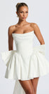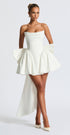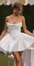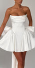 Trinity mini elbise; modern, sofistike ve dikkat çekici bir duruş arayanlar için kusursuz bir seçim. Drape detaylı straplez gövdesi zarif bir silüet sunarken, volanlı etek kesimi elbiseye ihtişam katıyor. Özel günlerde, nikah sonrası partilerde ya da doğum günü kutlamalarında yıldız gibi parlamak için tasarlandı.