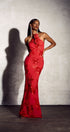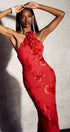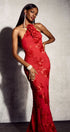 Trista 3D Çiçekli Boyundan Bağlamalı Uzun Elbise