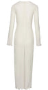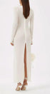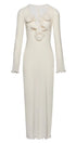 Derin V yakalı ve uzun kollu maxi elbisemizle gardırobunuzu yükseltin. Fırfırlı manşetler ve etek kısmı romantik bir dokunuş katarken, ön çiçek detayları kadınsı çekiciliğini artırıyor. Yarı şeffaf polyester kumaş güzel bir örtü oluşturur ve orta derecede esnek, rahat bir uyum sunar.