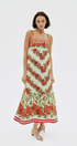 Bu zarif, yüksek belli maksi elbise, doğadan ilham alan bir çekicilik katan sofistike bir botanik baskıya sahiptir. Göz alıcı askılar ve akıcı siluet, her durum için mükemmel olan, zahmetsiz ve zarif bir görünüm yaratır.