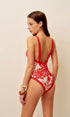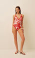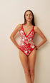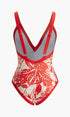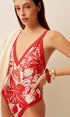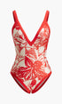 Tropikal Desenli V Yaka Tek Parça Mayo