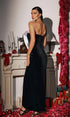 Turey Kadife Çiçek Yırtmaçlı Uzun Elbise