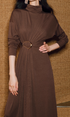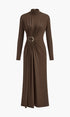 Turtleneck Düğümlü Pileli Uzun Elbise