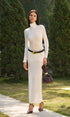 Balıkçı Yaka Yarı Şeffaf Dar Uzun Elbise (Kemersiz)