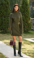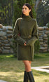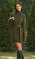 Balıkçı Yaka Kemerli Triko Kısa Elbise