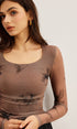 Batık Desenli Çiçek Baskılı File Bluz