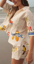 Benzersiz Tatil Halk Çiçek Baskı Gevşek Şort İki Parçalı Set