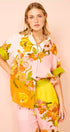 - Tasarım: Kısa kollu ve büzgü ipli belden oluşan saten çiçek desenli set
