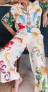 Benzersiz Baskı Kısa Kollu Bol Gömlek ve Elastik Bel Pantolon Takımı