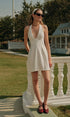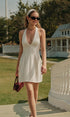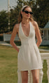 V Yaka Halter Bağlamalı Pileli Elbise
