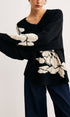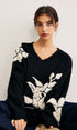 V Yaka Örgü-Çiçekli Shift Kazak