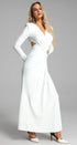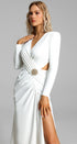 V Yaka Uzun Kollu Yırtmaçlı Solid Maxi Elbise