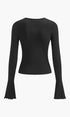 Semi-Sheer V-Neck Mesh Detaylı Bluz