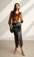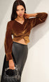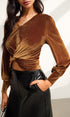 Dar Kesim Kadife Pileli Bluz