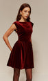 Kadife Pileli Askılı Kısa Elbise